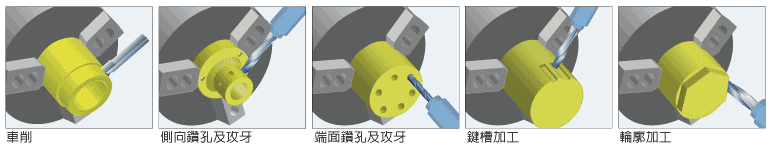 選用動(dòng)力刀塔及C 軸控制使GLS 系列成為車銑復(fù)合中心,可將一工件在同一車床內(nèi)完成車、銑、鉆及攻牙等加工。避免因?yàn)楣ぜ跈C(jī)器間移動(dòng)所產(chǎn)生的誤差,并節(jié)省加工時(shí)間及人力。